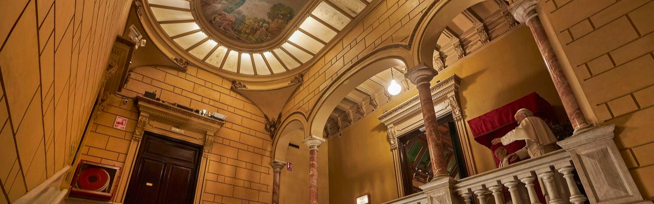 Realitzat en estil neoclàssic, és un palauet que va ser creat com a seu de la Banca de Barcelona, i en 1973 va obrir les seves portes al públic convertit en el Museu de Cera de la ciutat.